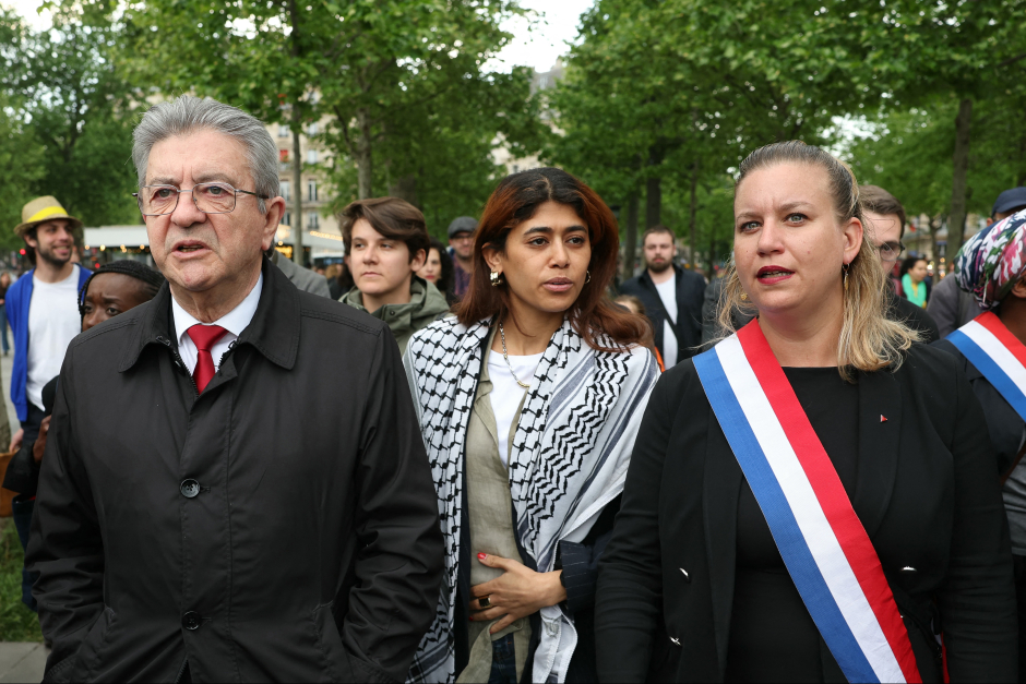 Jean-Luc Mélenchon, Rima Hassan et Mathilde Panot (AFP)