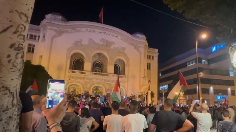 Rassemblement populaire à Tunis pour accueillir le retour de la caravane Soumoud, le 19 juin 2025.