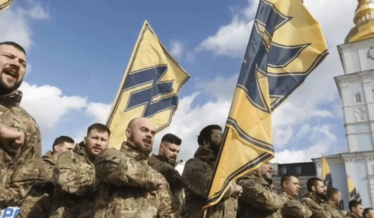 Les médias occidentaux ont largement affirmé dans le passé que les soldats dans l'armée ukrainienne n'arboraient pas des symboles nazis, et surtout pas la brigade Azov. Cela était signalé comme étant une fake news de la part de la Russie. Le discours occidental apparaissait de cette manière : «Non, les membres d'Azov ne sont pas des néo-nazis» : «Tout le mythe russe des nazis en Ukraine ne tient qu'à un seul fil, celui du Régiment d'Azov, une unité de la Garde nationale d'Ukraine».