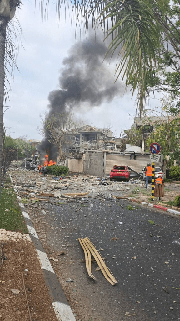 Ci-dessous, une image de l'impact d'un missile à Tel Aviv Yanyor :