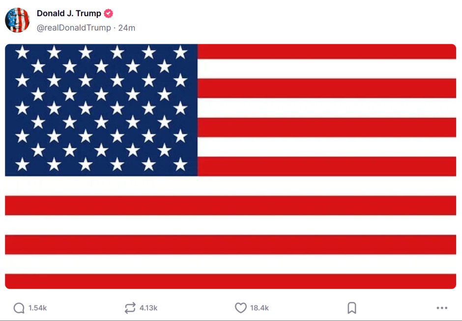 Une heure après avoir annoncé qu'il avait directement bombardé l'Iran,  Trump a posté un jpeg d'un drapeau américain, sans autre commentaire.