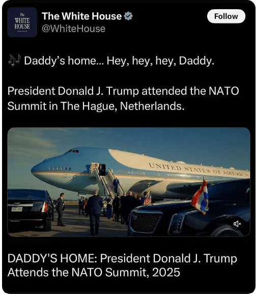 «En tant qu'Européen, le fait que le Bureau ovale utilise maintenant le commentaire «Daddy» de Rutte dans sa propagande révèle le niveau de déshonneur où est tombé notre continent.