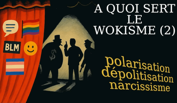 Ce phénomène largement soutenu par l'appareil capitaliste permet de renforcer la polarisation de l'opinion autour de thématiques qui, fondamentalement, ne sont pas du ressort de la politique. C'est donc un grand mouvement de dépolitisation qui accompagne celui charrié par la technocratie et son approche pseudoscientifique de la société. En amenant des thématiques de l'ordre de la vie privée dans le «débat» public, le wokisme participe à la destruction de cette liberté fondamentale, le droit à la vie privée, au profit des propriétaires des systèmes techniques de surveillance. Enfin, le wokisme est une manière de prétendre à la supériorité morale, qui satisfait le narcissisme de ses adeptes.