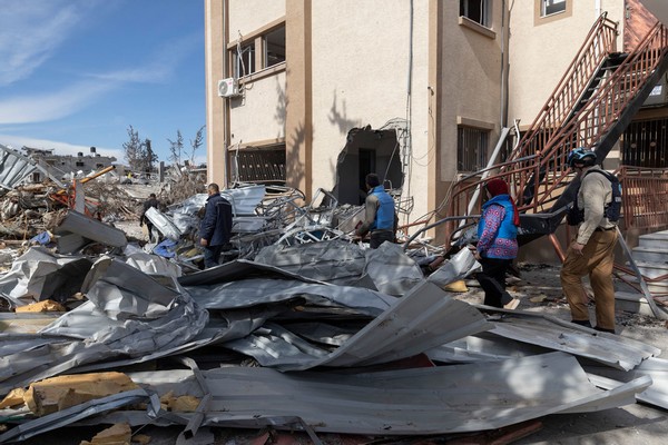 © WHO. Un employé de l'ONU évalue les dégâts causés à la maternité du Croissant-Rouge émirati à Rafah,