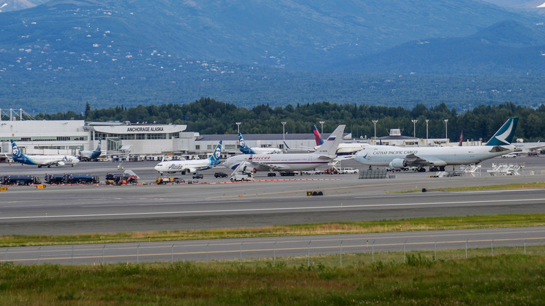 Un avion russe Iliouchine Il-96, à l'aéroport international Ted Stevens d'Anchorage, avant la rencontre entre Vladimir Poutine et Donald Trump, ce 15 août 2025. [Photo d'illustration]