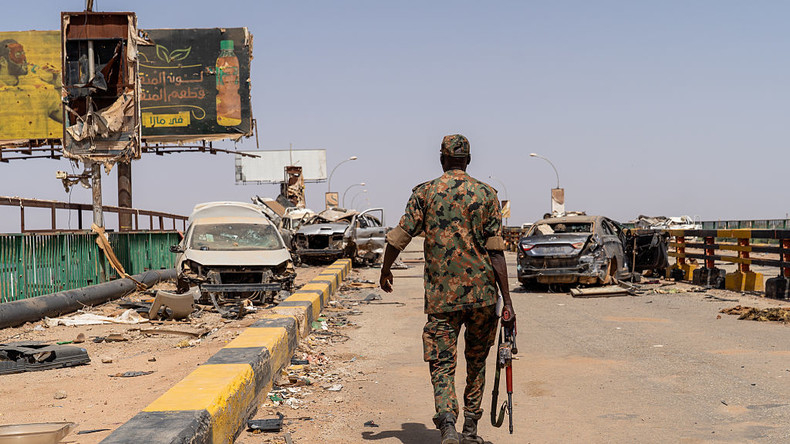 Un soldat des forces armées soudanaises sur le pont Shambat, qui reliait autrefois Omdurman au quartier de Bahri à Khartoum, détruit par l'armée pour stopper l'avancée des Forces de soutien rapide vers Bahri. [Photo d'illustration]