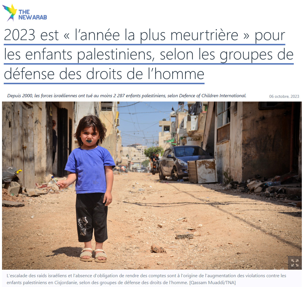 Article de  The New Arab en date du 6 octobre 2023 avant l'opération Déluge d'al-Aqsa