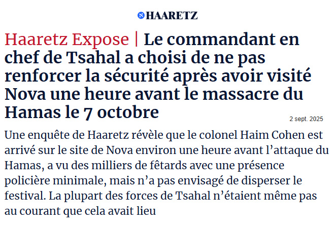 Article du journal israélien  Haaretz du 2 septembre 2025
