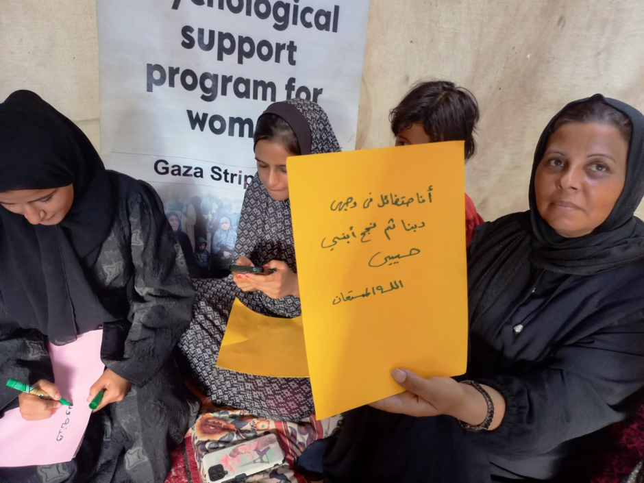 Brigitte Challande, 6 octobre 2025.- Continuellement les ateliers de soutien psychologiques pour les femmes s'attaquent aux questions qui permettent de rester debout dans l'enfer de Gaza. Ici celui du 5 octobre.