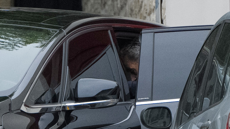 L'ancien président français Nicolas Sarkozy monte dans sa voiture en quittant son domicile avant de se rendre au Parquet national financier afin de fixer la date et le lieu de son incarcération, le 13 octobre 2025 à Paris.