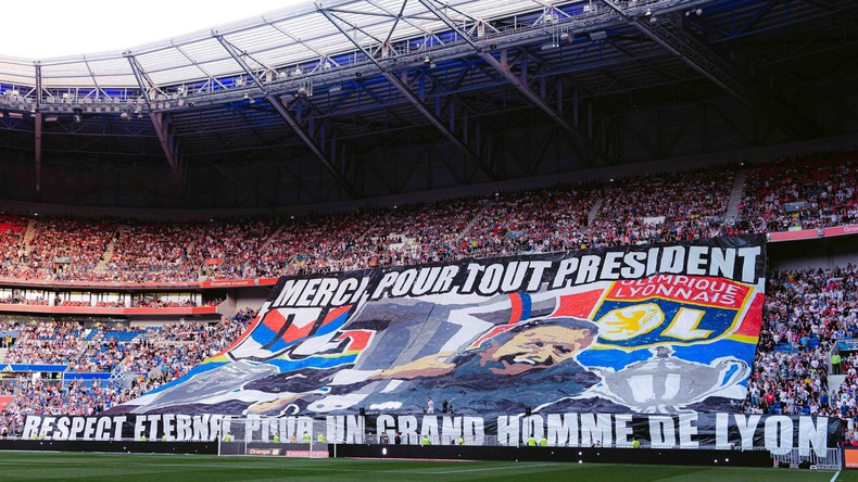 Un tifo des supporters lyonnais pour saluer la présidence de Jean-Michel Aulas à la tête de l'OL pendant 33 ans