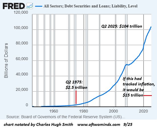 Correspondent Scott suggested I consider the possibility that the powers that be will respond to a weakening of the economy by pushing interest rates toward zero, reinstating ZIRP-Zero Interest Rate Policy. The purpose of ZIRP is to reduce the costs of borrowing money as the means of goosing borrowing-and-spending and inflating another credit-asset bubble, a.k.a. "the wealth effect," the Federal Reserve's tried-and-true means of goosing the spending of the top 10% by making them wealthier-not by becoming more productive, but by jacking up the market valuation of the assets they own.