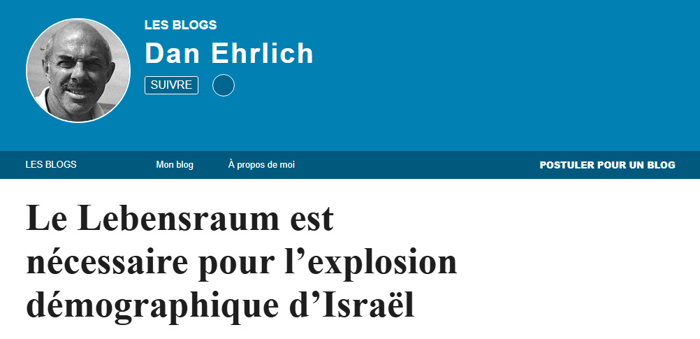 The Times of Israel a supprimé un article de Dan Ehrlich utilisant le Lebensraum - un terme nazi - pour justifier les politiques territoriales d'Israël en Cisjordanie