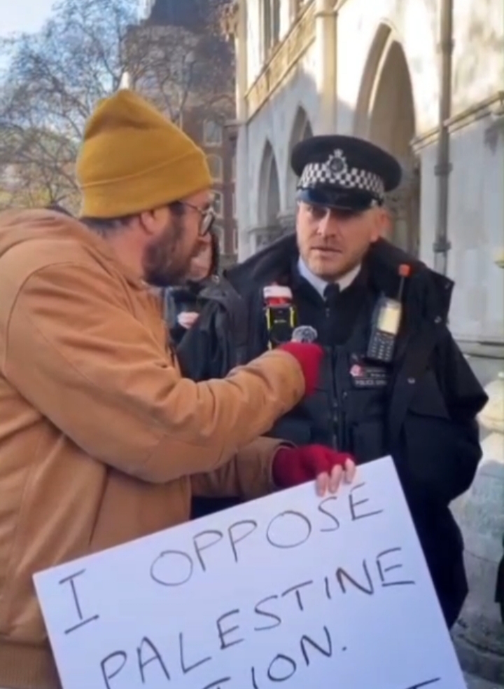 Interrogé par un militant pro-palestinien sur le risque d'arrestation pour avoir brandi une pancarte soutenant le génocide israélien à Gaza, un policier britannique a répondu : « Je n'ai pas d'avis. »