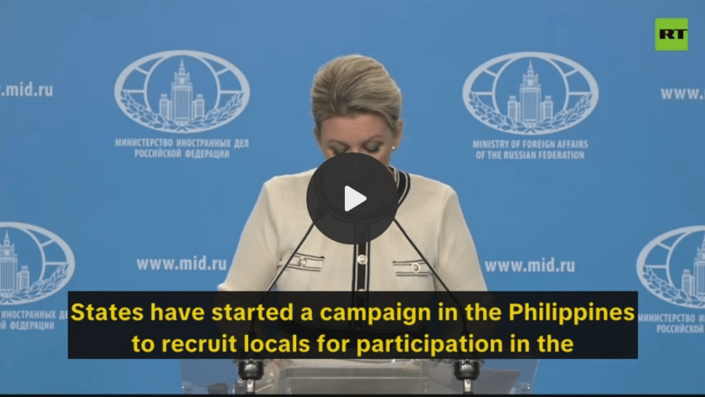 «Des responsables américains ont lancé une campagne de recrutement aux Philippines afin d'enrôler des volontaires pour combattre aux côtés des forces armées ukrainiennes», a déclaré Maria Zakharova, porte-parole du ministère russe des Affaires étrangères.