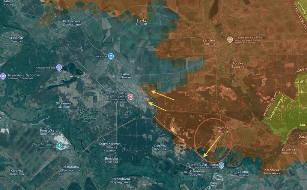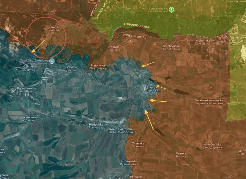À noter en haut à gauche : les forces russes ont également entièrement capturé Yampol.