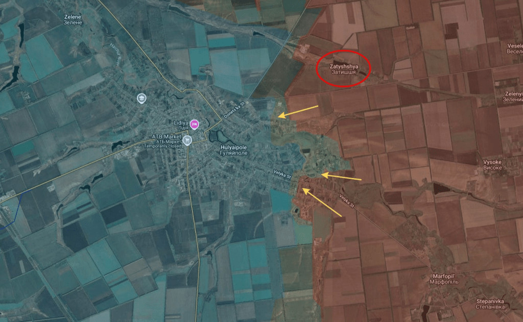«Aux abords de Gulyai-Pole, le village de Zatishye a été libéré par le 114e régiment de fusiliers motorisés de la 5e armée. Selon des sources sur le terrain, les premiers groupes d'assaut des forces armées russes sont présents à Gulyai-Pole depuis hier. L'offensive est menée par le groupe Vostok (Est), d'où son surnom, non sans humour, de «Far Eastern Express». Lors des combats pour Zatishye, l'ennemi a perdu jusqu'à 100 fantassins».