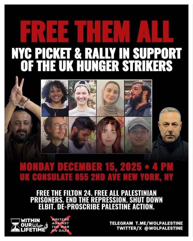 La militante a exhorté le public à intensifier la pression, à bloquer Elbit Systems et à poursuivre la lutte contre l'injustice, déclarant que leur combat de prisonniers était indissociable de la lutte pour la libération de la Palestine et que l'année à venir verrait une résistance renouvelée jusqu'à l'obtention de la liberté.