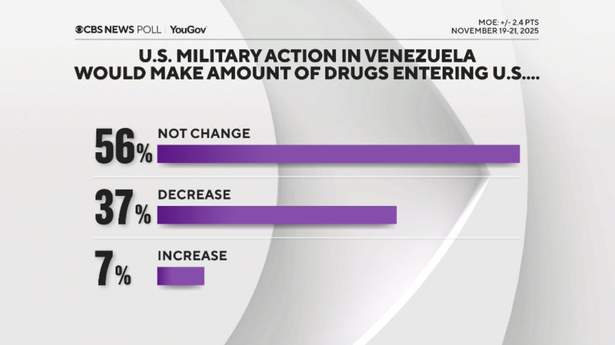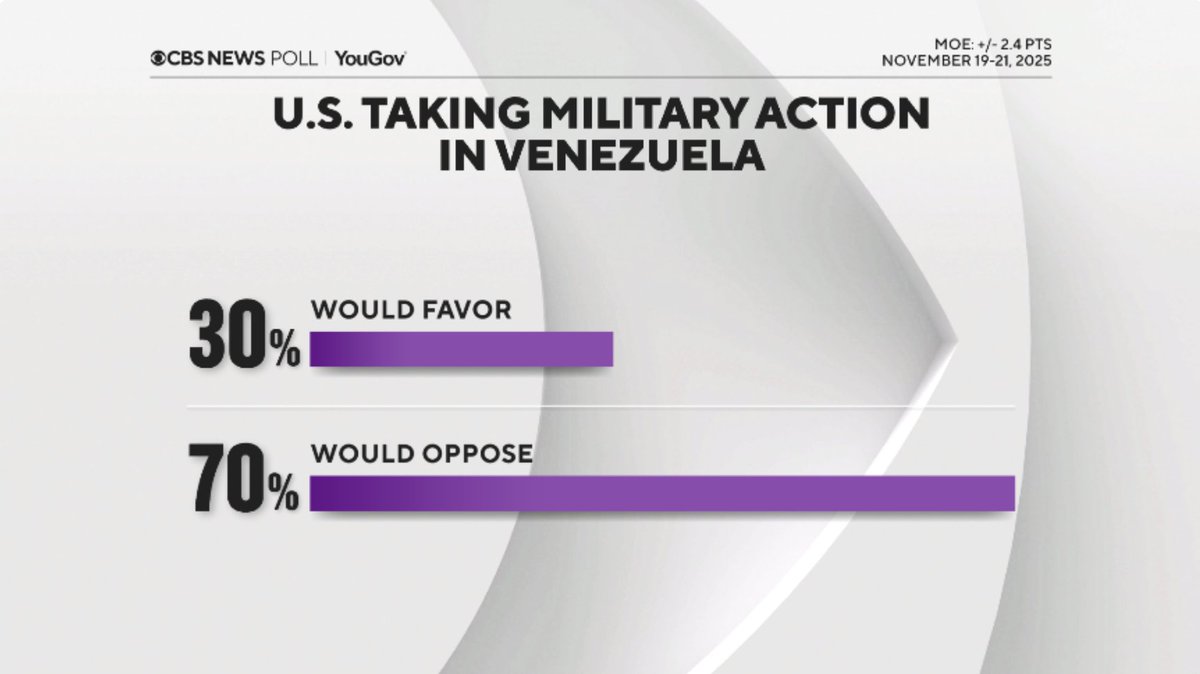 https://pbs.substack.com/profile_images/1544410511340703745/WwmjvWjo.png Max Blumenthal@MaxBlumenthal Only a tiny fraction of Americans support a regime change war on Venezuela or believe the official lie about narco trafficking, according to a new YouGov poll Rubio's Gusano Games are already discredited, and will produce ferocious backlash if they go to the next stage 3:01 PM · Nov 25, 2025 · 51.9K Vues -- 86 Réponses · 824 Reposts · 1.99K Likes