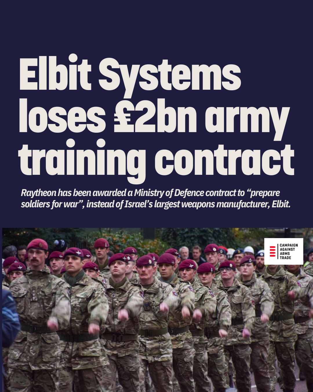Cette décision est intervenue après l'annonce qu'Elbit Systems avait perdu un contrat de 2 milliards de livres sterling qui leur aurait permis de former 60 000 soldats britanniques chaque année, selon le communiqué, ajoutant que depuis 2012, Elbit « a remporté plus de 10 contrats publics, signe d'un regain de faveur auprès des responsables ».