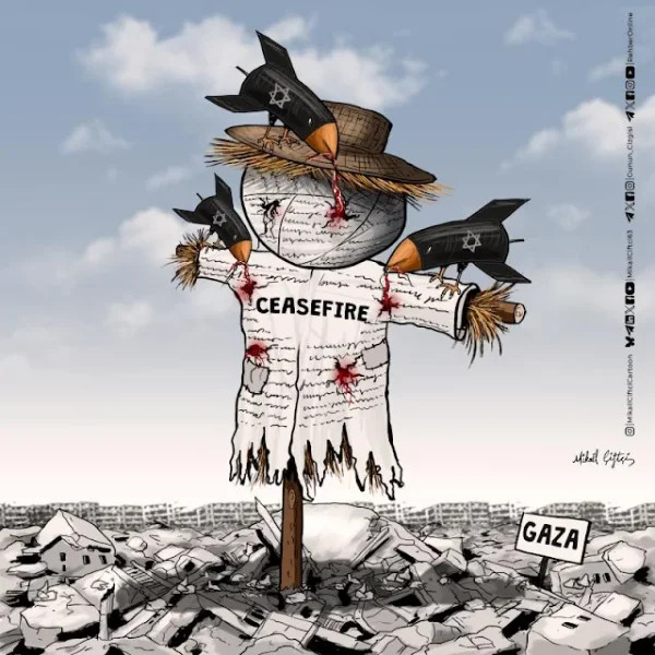 La décision d'imposer à Israël la signature d'un accord de cessez-le-feu s'est révélée être l'affaire de l'année. C'est le premier cessez-le-feu unilatéral de l'histoire. Tout est permis à Israël tandis que l'autre camp n'a pas le droit de respirer. Tous les otages ont été rendus sauf un corps, et la promesse d'évacuer Gaza une fois les otages rendus s'est évaporée instantanément, oubliée comme si elle n'avait jamais été faite. Vous vous souvenez ? Les otages ont été rendus, et Israël est à Gaza, depuis lors et pour toujours.