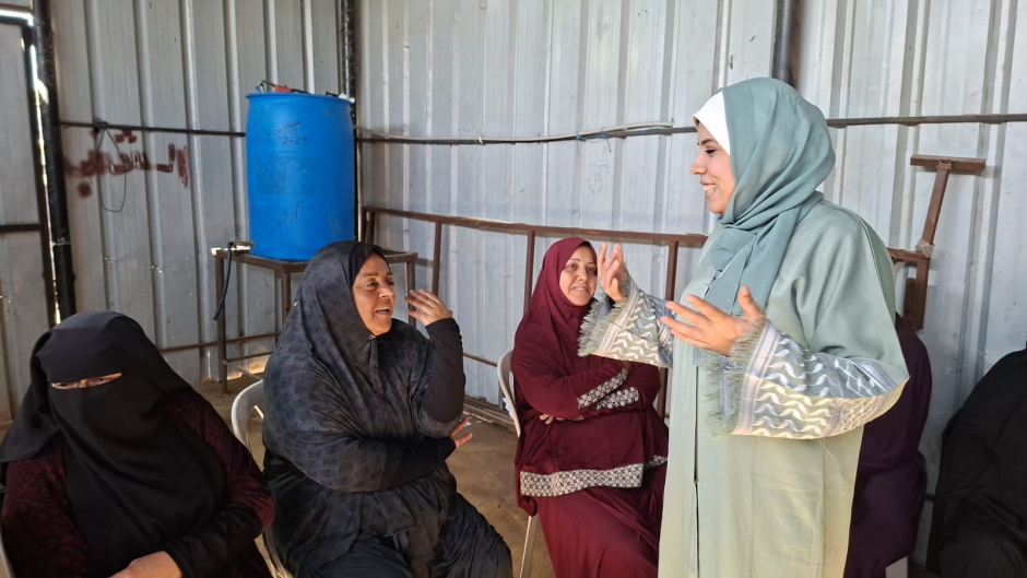 "À l'ouest de Deir al-Balah, au sein du camp Al-Durra dans la région centrale, la rencontre ressemblait à une tentative sincère d'offrir un moment de respiration à des femmes épuisées par les jours qui s'enchaînent. Dans ce lieu où les détails pesants s'accumulent et où les responsabilités s'entrelacent au point d'étouffer le temps lui-même, vingt femmes déplacées se sont réunies, portant sur leurs visages une fatigue accumulée qui ne nécessite aucune explication. Chacune d'entre elles vit une journée qui commence avant tout le monde et se termine après que tout le monde se soit endormi : une journée remplie par la recherche d'eau, l'organisation des repas, le suivi des enfants, la gestion de la peur et la tentative de préserver la cohésion d'une famille soumise chaque jour à une nouvelle épreuve de patience.