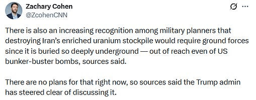 CNN rapporte maintenant que le stock d'uranium enrichi iranien est en réalité imperméable aux frappes et qu'il faudrait une intervention terrestre pour le détruire complètement - quelle surprise !