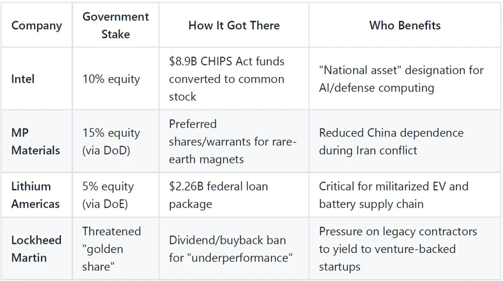 Le 7 janvier 2026, Trump a signé un décret autorisant le "secrétaire à la Défense" à identifier les entreprises de défense peu performantes, à leur interdire les rachats d'actions et à leur imposer éventuellement une "action d'or" - une participation forcée donnant au gouvernement le contrôle direct sur les priorités de production d'une entreprise.
