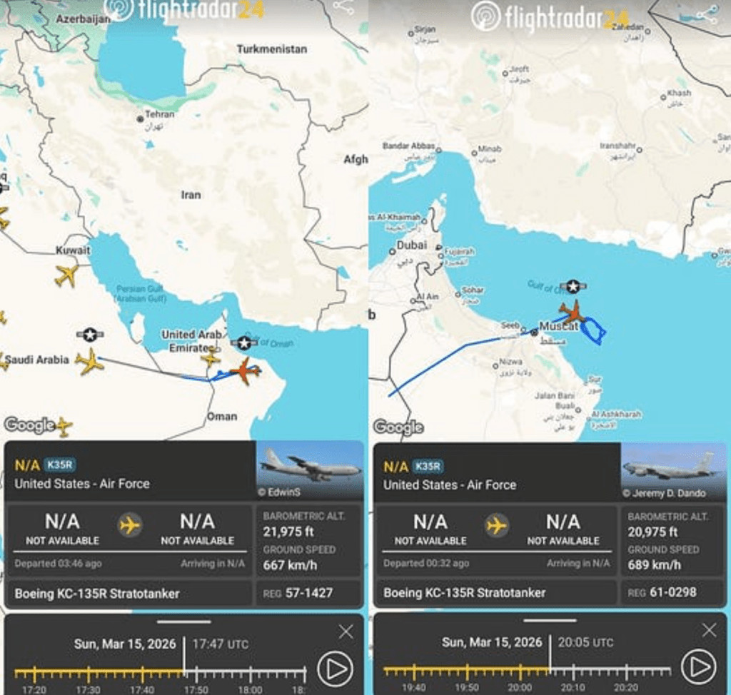 Les preuves à l'appui proviennent du suivi des vols, qui semblent indiquer que des avions ravitailleurs opérant depuis l'Arabie saoudite comblent le fossé pour ce rayon d'action de combat extrêmement long :