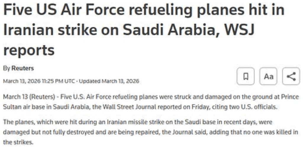 L'"opération de combat spéciale" continue d'accumuler les triomphes sans retenue, avec l'annonce par Trump qu'il avait infligé à l'île iranienne de Kharg une punition des plus bibliques. Le lendemain même, plusieurs médias grand public ont rapporté que l'Iran exportait du pétrole depuis l'île comme d'habitude.