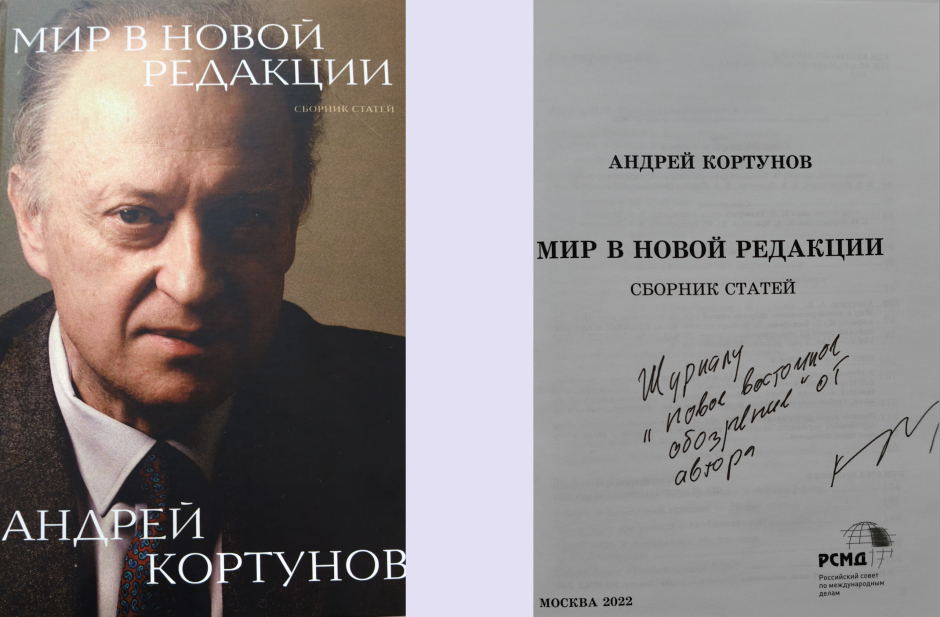 Le livre de Kortunov "Le Monde dans la nouvelle édition", autographié