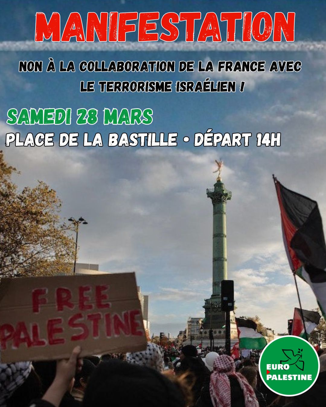 C'est notamment pour dénoncer cette complicité que nous descendrons dans la rue samedi 28 mars, dans le cadre d'une grande journée de solidarité avec le peuple de Palestine.