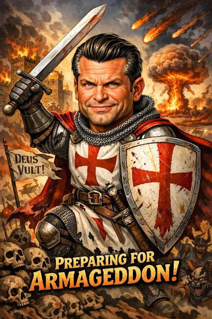"Cette affiche répugnante et totalement inconstitutionnelle, immorale, contraire à l'éthique et illicite de Jésus tirant un obus de mortier ne fait qu'étayer de manière incommensurable la validité absolue du"récit d'Armageddon du Livre de l'Apocalypse dans le Nouveau Testament"proféré par un certain nombre de commandants militaires américains à leurs subordonnés comme justification divine du Christ après l'attaque non provoquée de l'Amérique contre l'Iran les 28 février-1er mars 2026.
