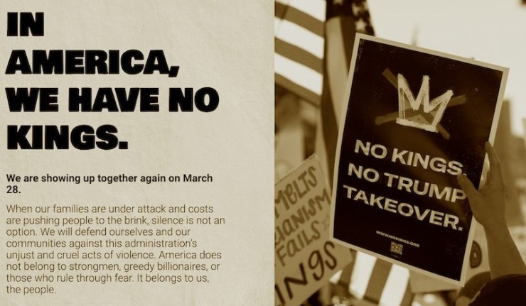 Une autre manifestation géante "Pas de rois" est prévue ce week-end, et je ne peux m'empêcher de trouver cela révoltant que ce soit ce qui ressemble le plus à une manifestation anti-guerre de grande ampleur aux États-Unis actuellement.