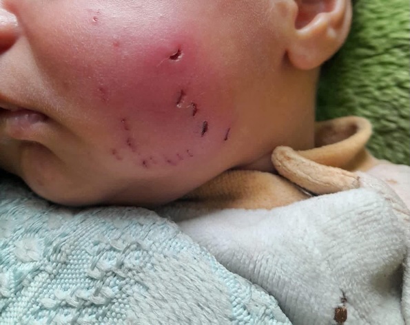 C'est de Gaza, que l'on nous envoie cette terrible photo d'un bébé mordu jeudi par un gros rat dans la tente où il dormait à Deir El Balah.