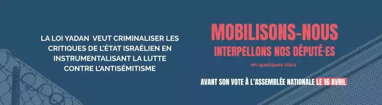 Député.e.s, je vous appelle à voter contre ce projet de loi liberticide appuyant une politique colonialiste et génocidaire contre les Palestinien.ne.s.