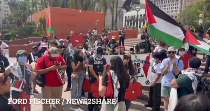 Comme on peut le voir à leurs slogans et à leurs drapeaux à Los Angeles :