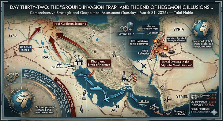 Le piège de l'invasion terrestre et la fin des illusions hégémoniques... Washington convoite le pétrole iranien plutôt que les sables kurdes, et Israël s'enfonce dans le bourbier d'Aynata. - Talal Nahle