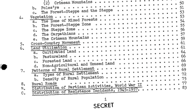 Et le Prologue continue : «l'énorme influence russe en Ukraine depuis très longtemps, la ressemblance entre la langue, les coutumes, l'histoire (de ces peuples -ndlr) sont des éléments qui, pour ce qui est de la résistance (potentielle - ndlr) marque la différence entre l'Ukraine et les satellites (de l'URSS) en Europe orientale. En conséquence, il ne faut pas s'attendre à trouver une résistance à la domination soviétique telle que dans les satellites... les points conflictuels entre les Ukrainiens et les Russes sont moindres que dans d'autres régions dominées par les Russes. Certains Ukrainiens ne sont que très faiblement conscients qu'il y aurait des différences entre eux et les Russes, et ne ressentent pratiquement aucun antagonisme de type national. Cependant, des griefs significatifs existent et sous descirconstances favorables, on peut espérer que ces gens (sic)aideront les Forces Spéciales US à combattre le régime».