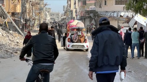 © UNRWA Des Gazaouis rentrent chez eux après la mise en œuvre du cessez-le-feu. Près de 2.500 camions d'aide en trois jours