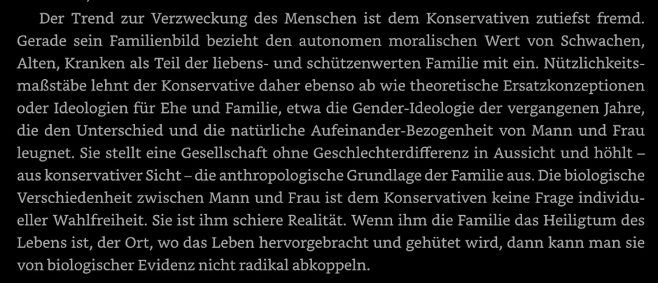 Snapshot from Wolfram Weimer's Conservative Manifesto, polemicizing against "gender ideology" as a supposedly corrosive force