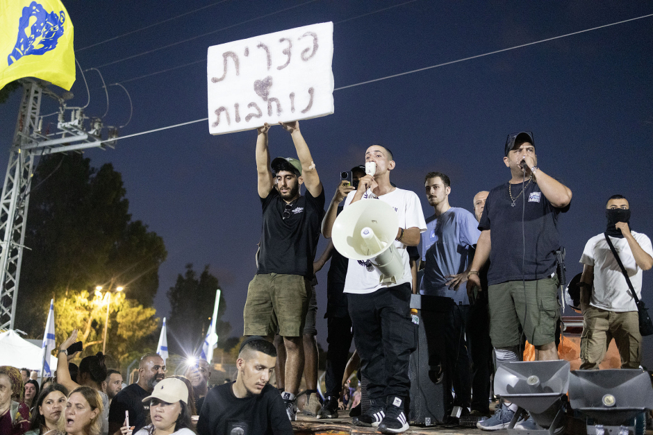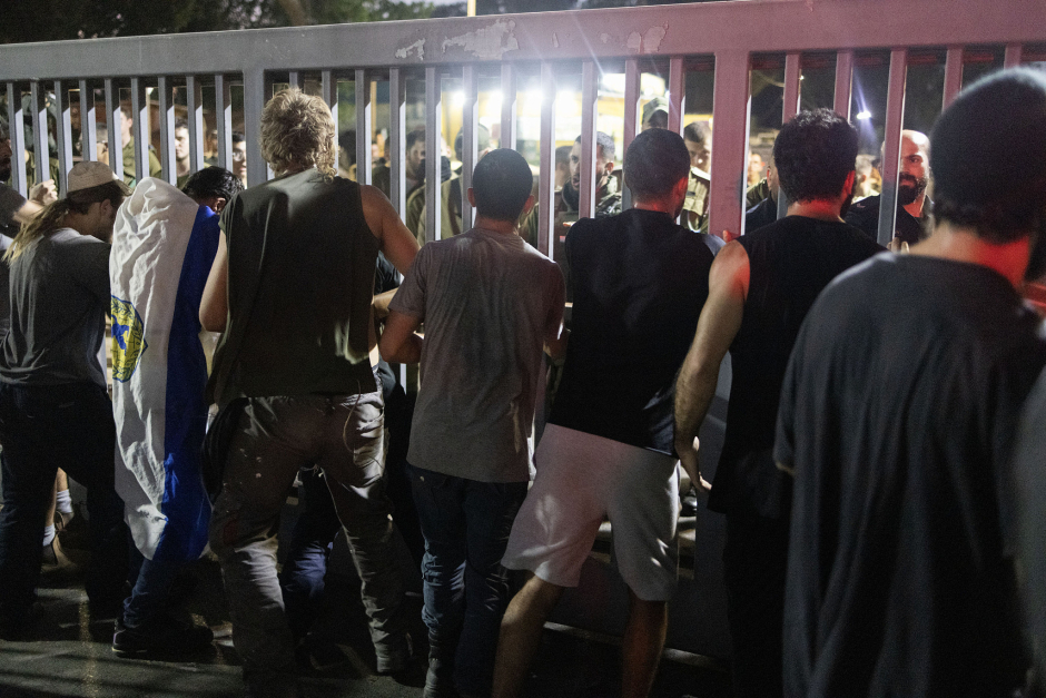 Manifestants devant la base militaire de Beit Lid, le 29 juillet 2024. (Oren Ziv)