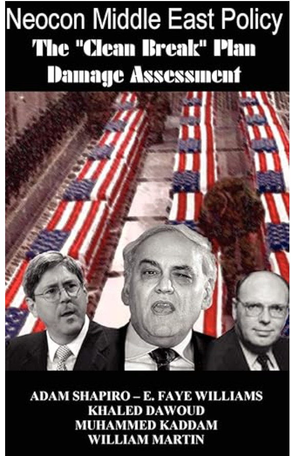 En 1996, ils ont fait paraître un document intitulé « Clean break (rupture nette) » pour les trente années suivantes : Israël ne négociera pas avec la Palestine et attaquera toute la région, avec l'aide des Etats-Unis, pour mettre en place des régimes qui accepteront cet état de fait. Le but est que les 13 millions de juifs du monde (dont 7 millions en Israël) contrôlent les quelques 400 millions d'arabes de la région. C'est pour ça que l'Irak, la Libye, la Syrie ont été détruits, et maintenant c'est le tour de l'Iran. Israël et le Mossad sont des machines à assassiner. Notez bien que les Etats-Unis, avec une population de 4 % veulent aussi contrôler 9 milliards de terriens. Ce n'est pas différent. C'est ainsi que l'impérialisme fonctionne.