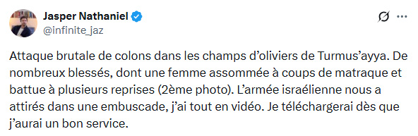 Le  témoignage du journaliste américain Jasper Nathaniel sur X (Twitter)