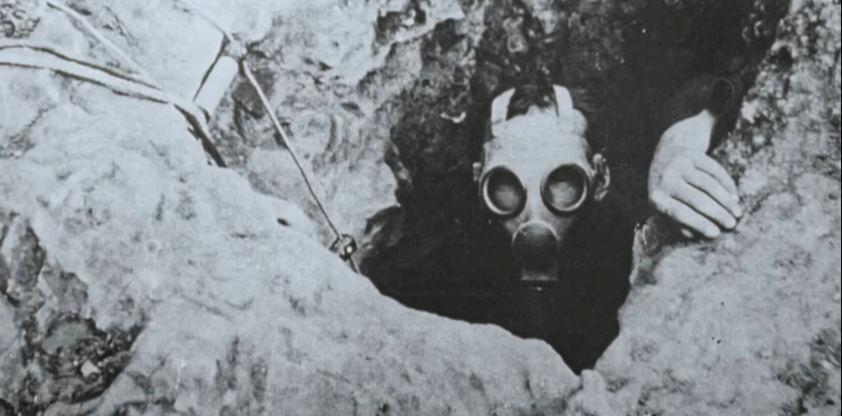 Image en vedette : Militaire français portant un masque à gaz dans une grotte où des gaz viennent d'être déversés pour en faire sortir des combattants ou des civils algériens qui s'y étaient réfugiés, pendant la guerre d'Algérie (non daté, entre 1956 et 1962). Photographie extraite du film documentaire Algérie, sections armes spéciales, réalisé par Claire Billet.  Olivier Jobard, Fourni par l'auteur