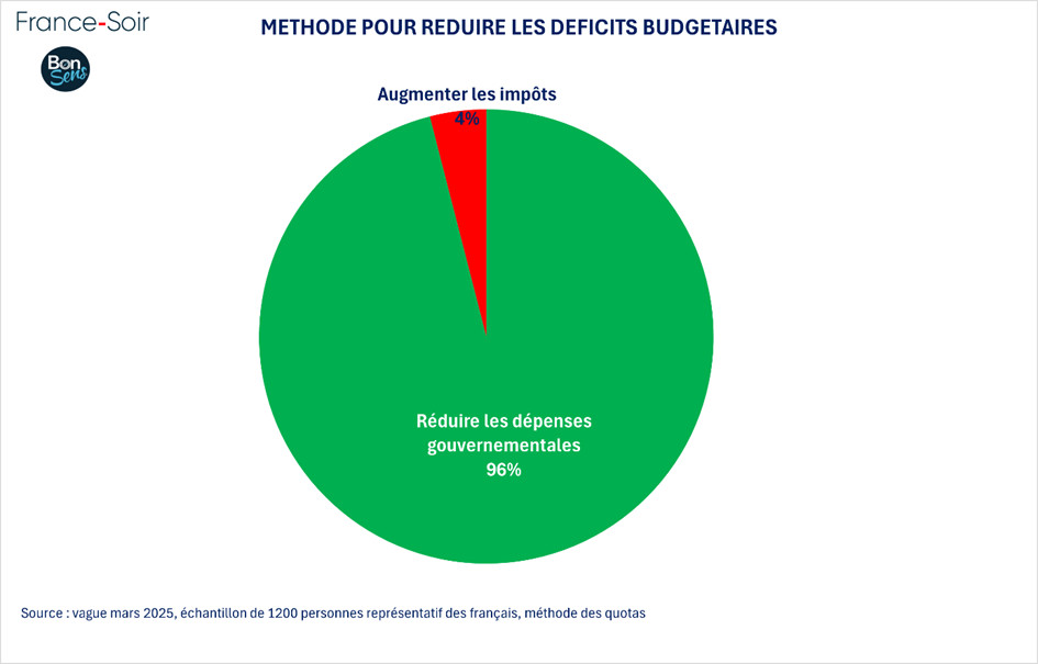 Et d'ailleurs sans non plus prendre en considération le fait que 96 % des Français estiment que « pour réduire les déficits budgétaires, il faut commencer par réduire les dépenses gouvernementales » !